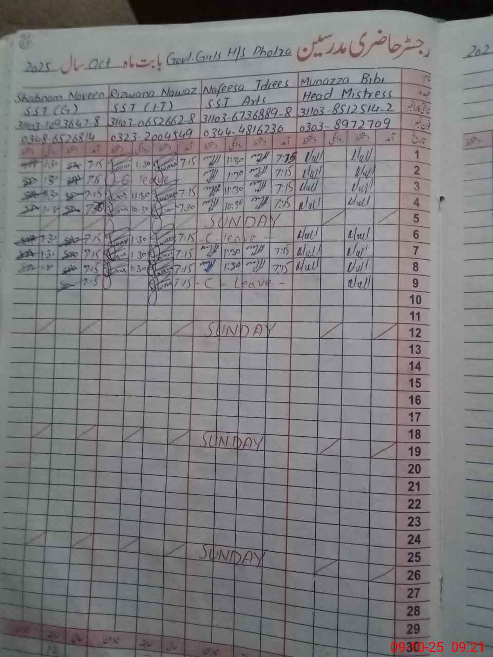 | CNIC | Full Name | Designation | R/C | Absence During Last Calender Month |
