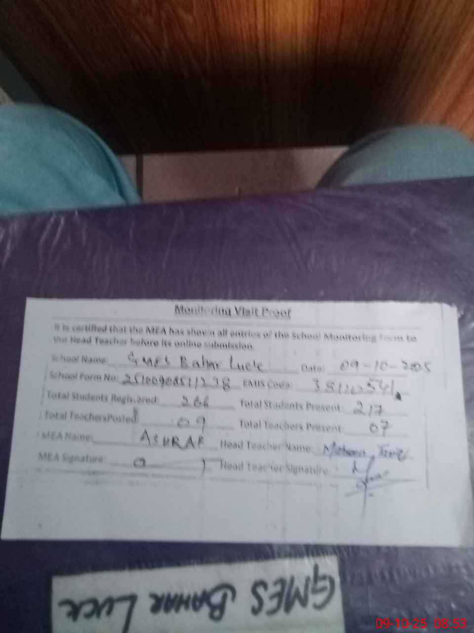 | EMIS Code: 38110541 | Name of School: GMES BAHAR LUCK | |||