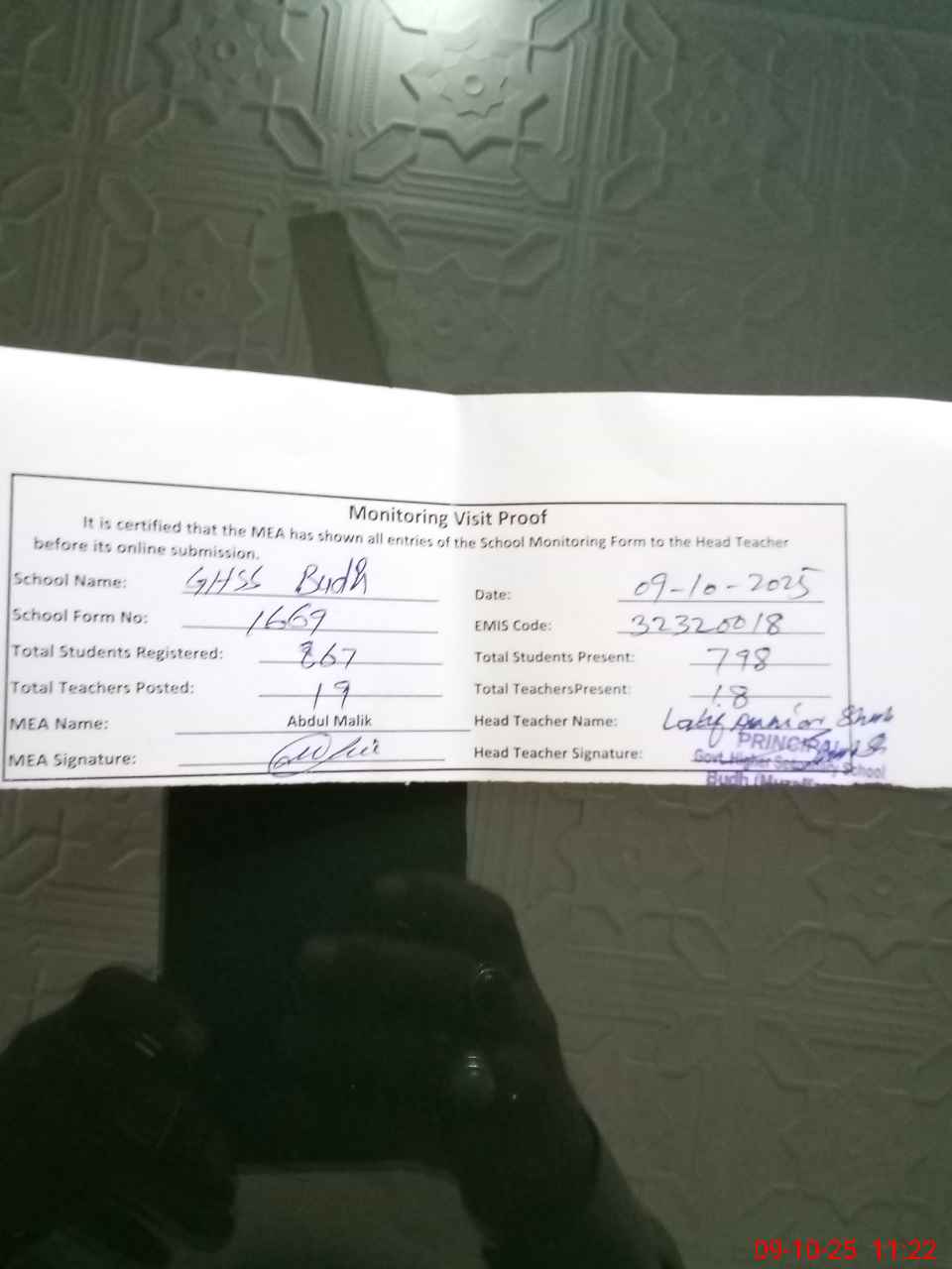 | EMIS Code: 32320018 | Name of School: GHSS BUDH | |||