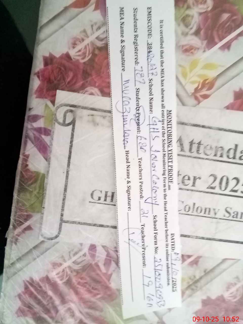 | Certified that this School was Inspected by the Undersigned MEA/DMO Today and the Information Stated Above is as Per Record. | |||||