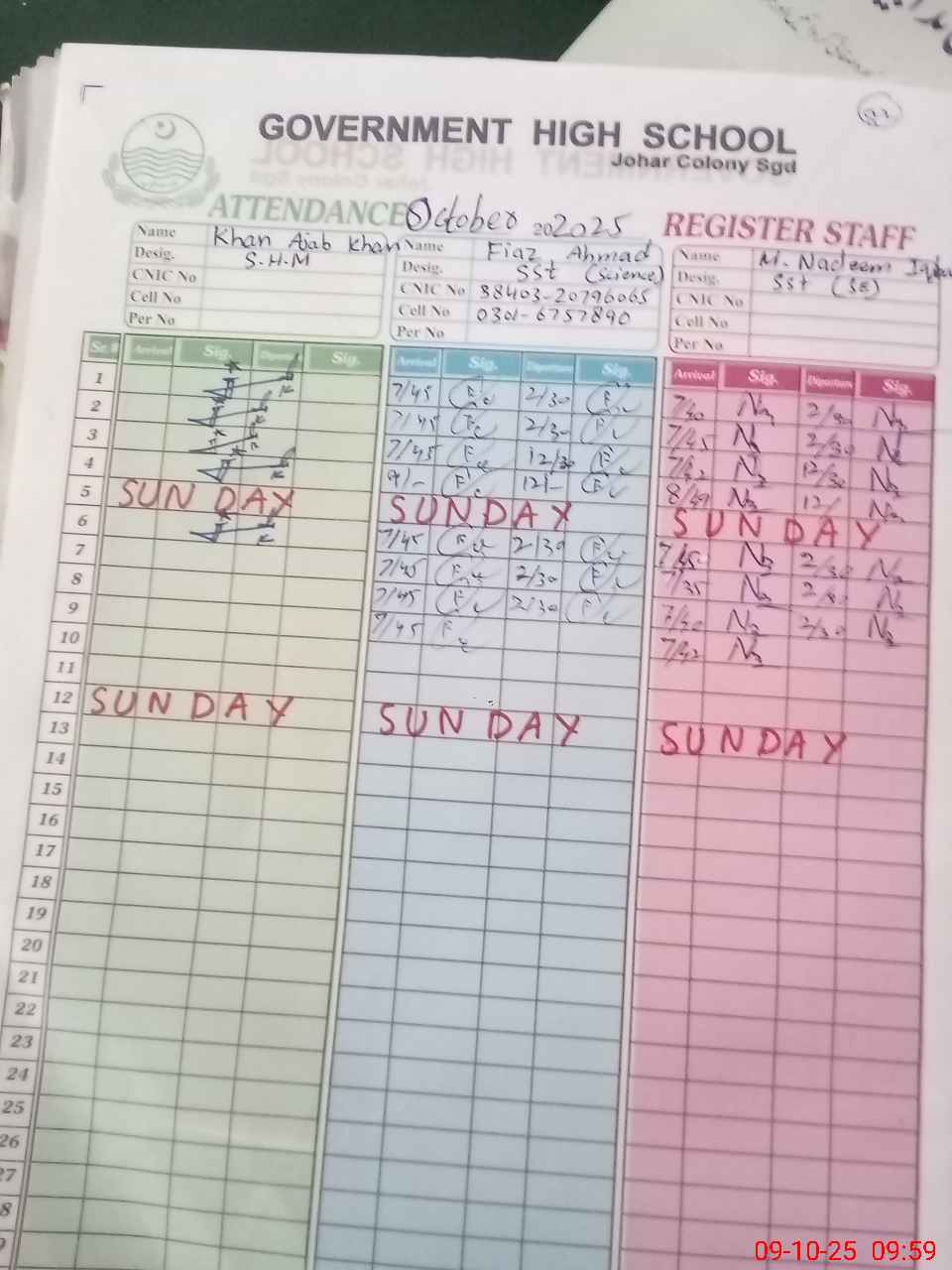 | CNIC | Full Name | Designation | R/C | Absence during last cal. month |