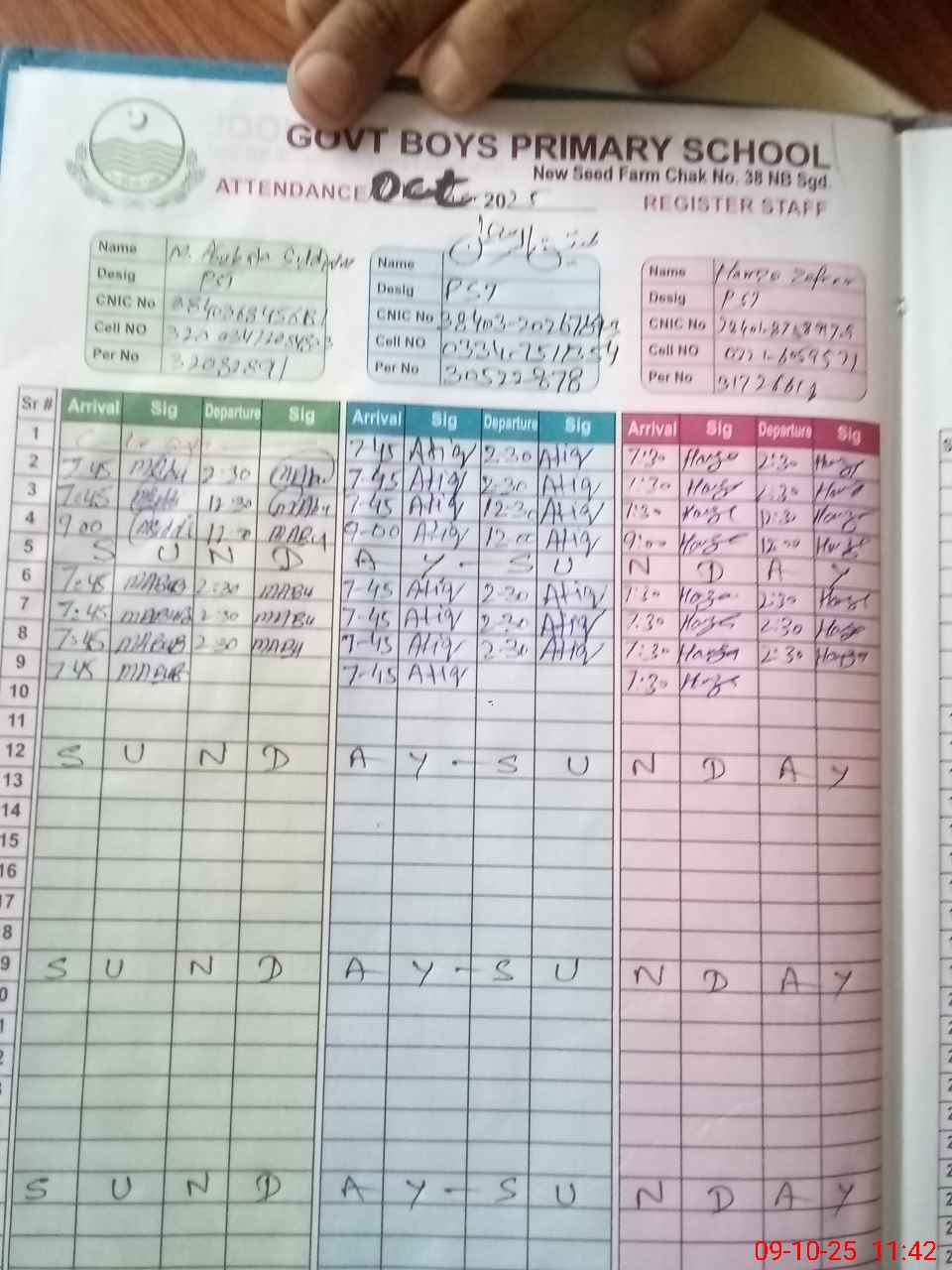 | CNIC | Full Name | Designation | R/C | Absence during last cal. month |