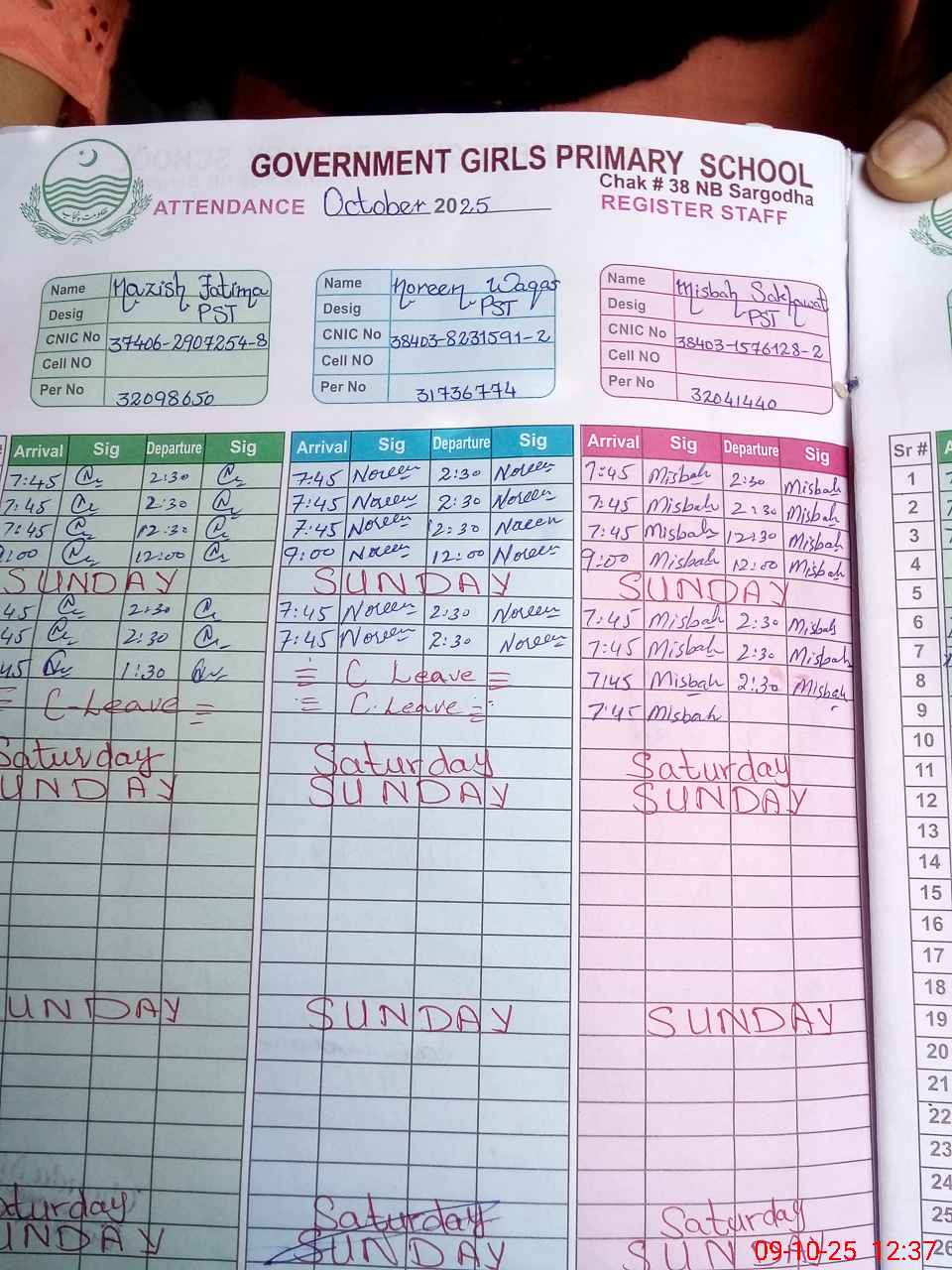 | CNIC | Full Name | Designation | R/C | Absence during last cal. month |