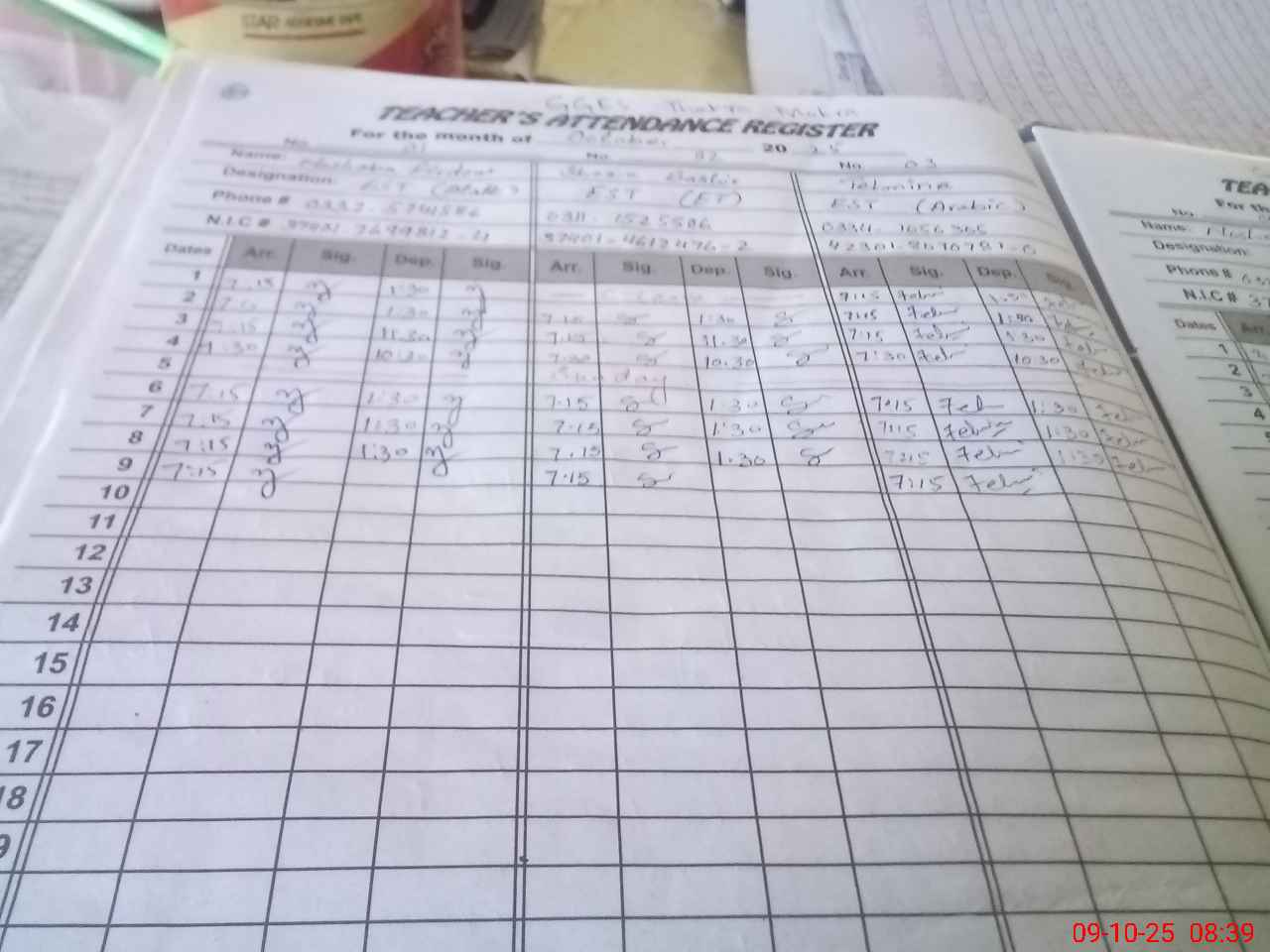 | CNIC | Full Name | Designation | R/C | Absence during last cal. month |