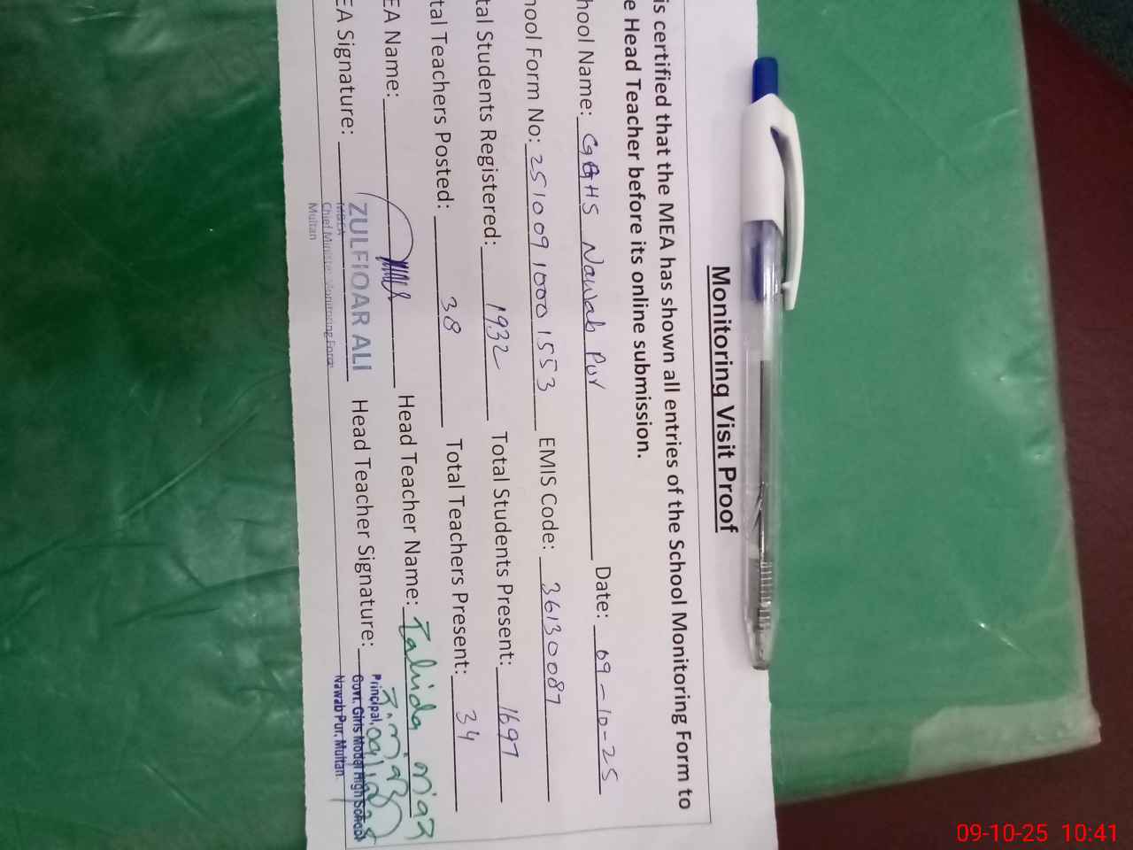| Monitoring Date: 09-10-2025 | Start Time: 09-10-2025 10:00 AM | End Time: 09-10-2025 10:42 AM | Name of MEA: Zu**** Al**** | |