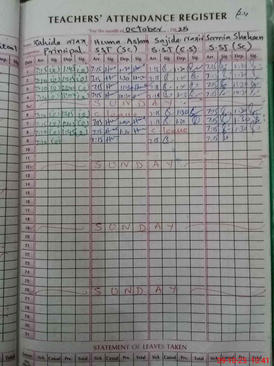 | 36**** | Su**** Ba**** | LA | 0 | 0 | 30 | 0 | 0 | 0 | 0 | 0 | 0 | Absent (Un-Authorized) | |