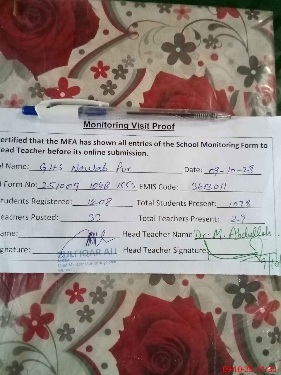 | EMIS Code: 36130011 | Name of School: GHS NAWAB PUR MULTAN | |||