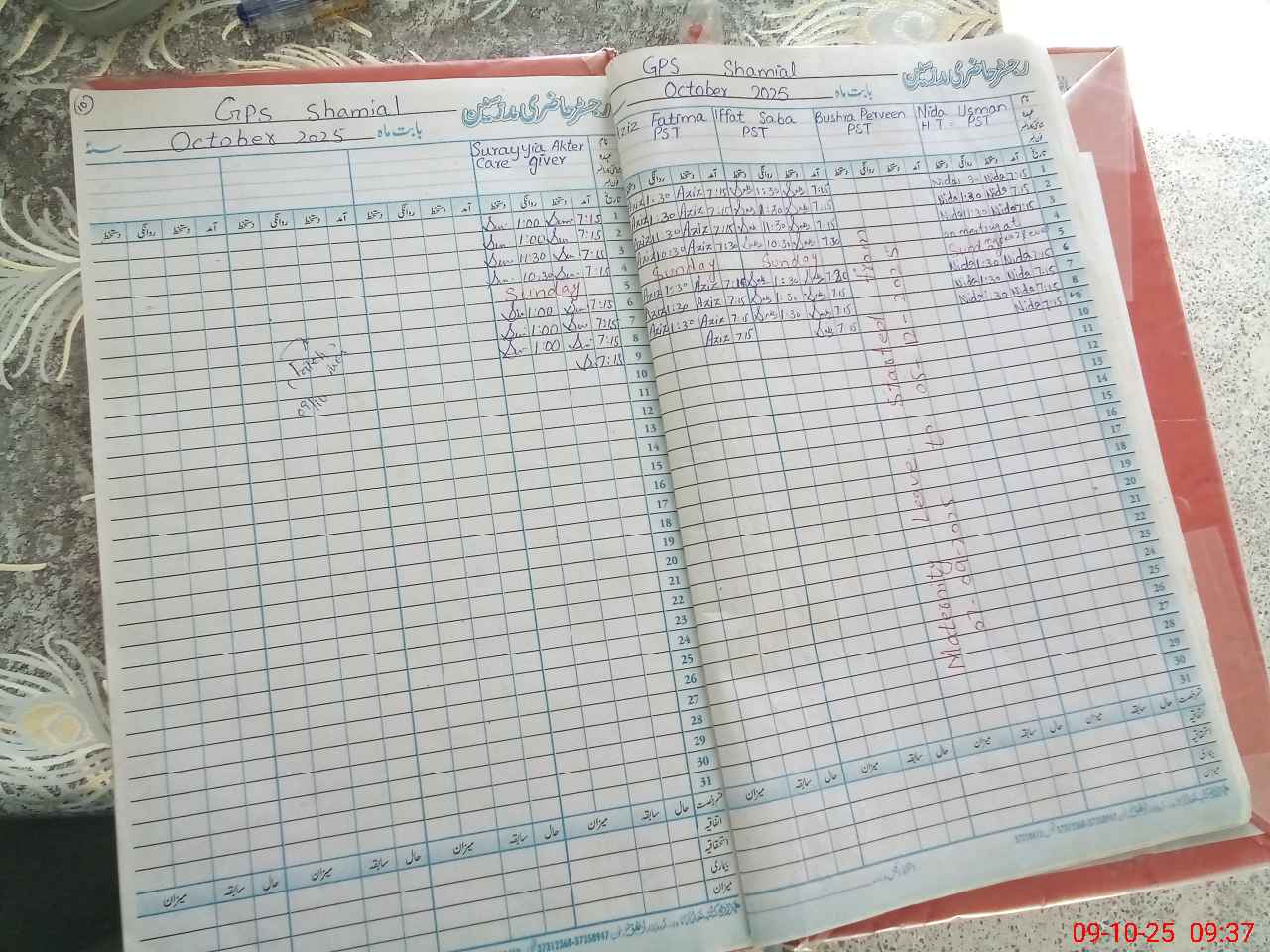 | Attendance Register | Head Teacher | MEA with School | Visit Proof |