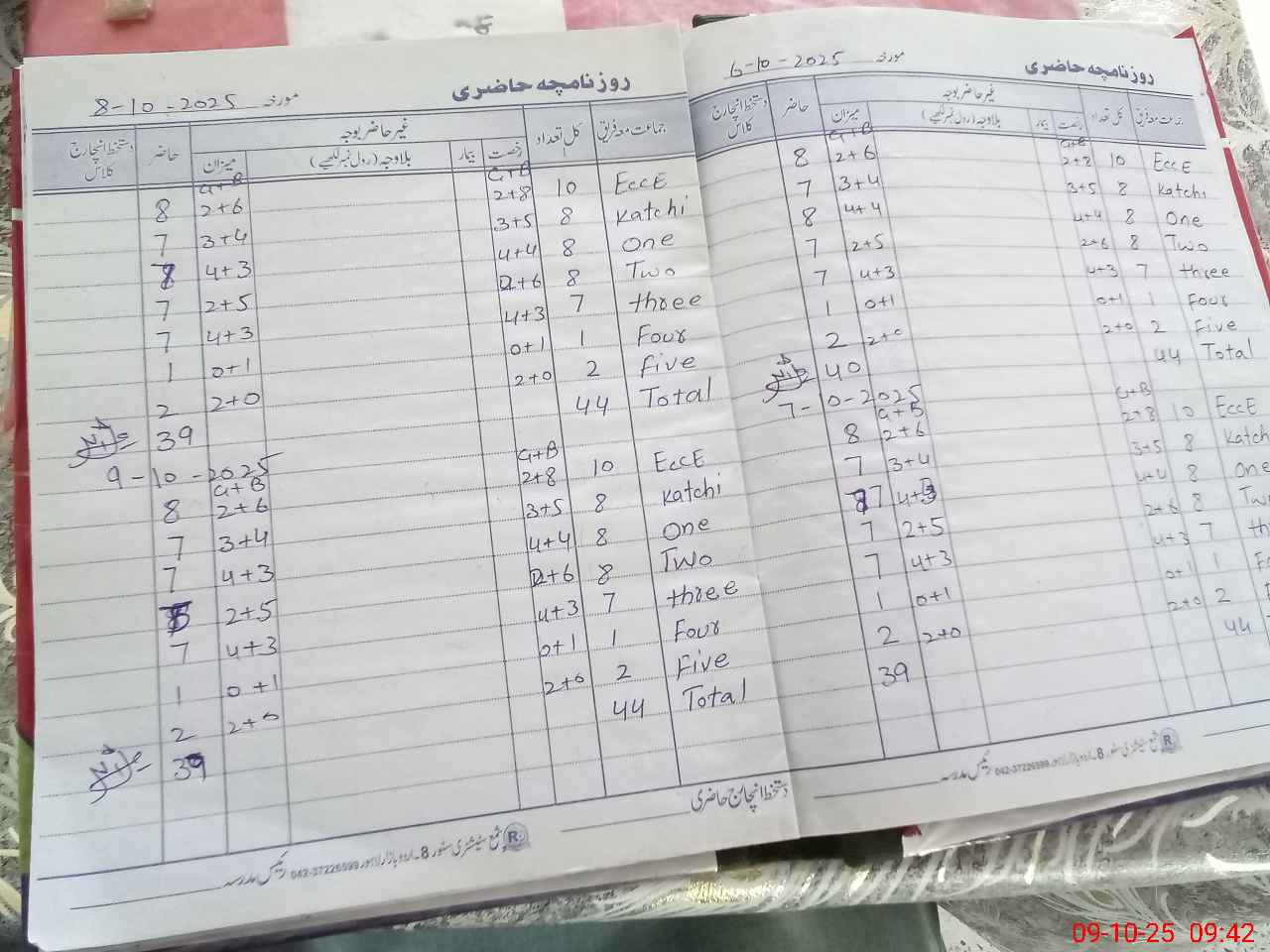 | Total Students Present | 9 | 0 | 7 | 8 | 5 | 7 | 1 | 2 | 39 | |||||||