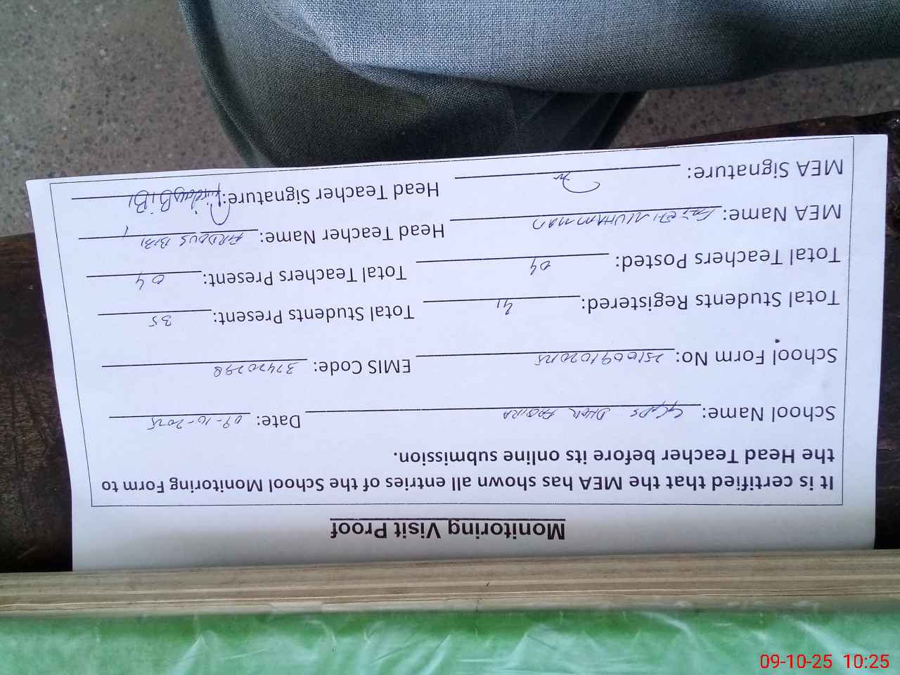| Monitoring Date: 09-10-2025 | Start Time: 09-10-2025 09:56 AM | End Time: 09-10-2025 10:28 AM | Name of MEA: Fa**** Mu**** | |