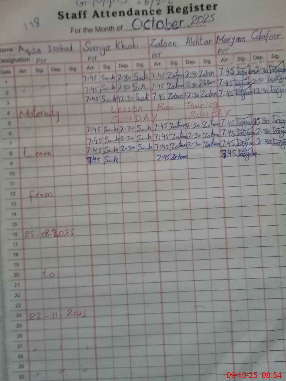 | 35**** | Aq**** Ir**** | PST | Regular | 0 | 0 | 0 | 0 | 0 | 0 | 0 | 0 | 0 | Maternity |