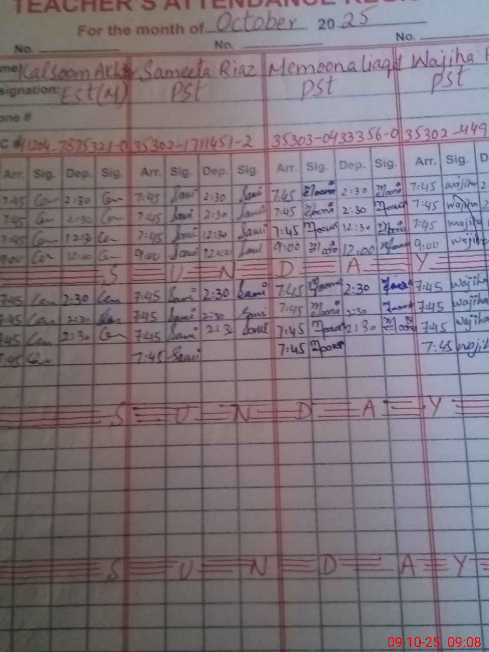 | CNIC | Full Name | Designation | R/C | Absence During Last Calender Month |
