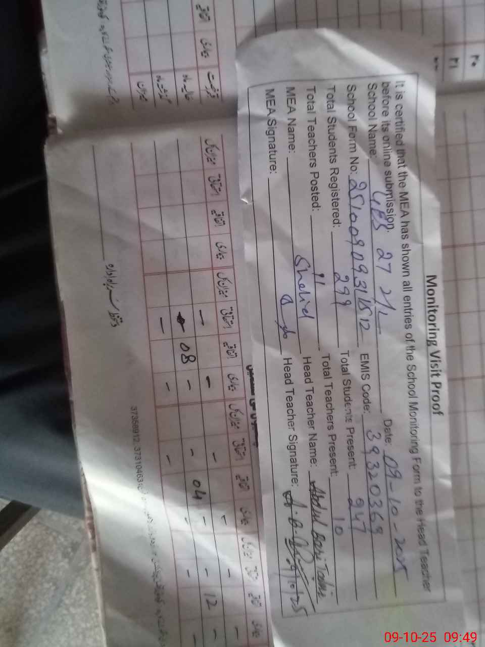 | Certified that this School was Inspected by the Undersigned MEA/DMO Today and the Information Stated Above is as Per Record. | |||||