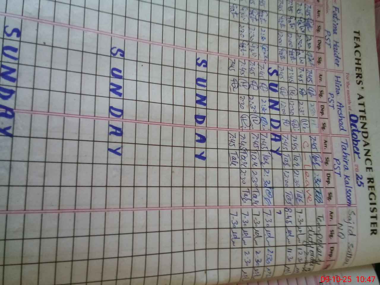 | Leave | Duty | Absent | Maternity | Medical | Ex- Pak |