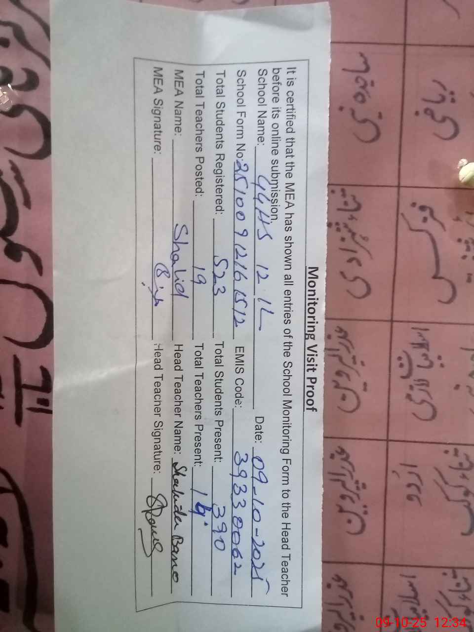 | EMIS Code: 39330062 | Name of School: GGHS CHAK NO.12/1-L | |||