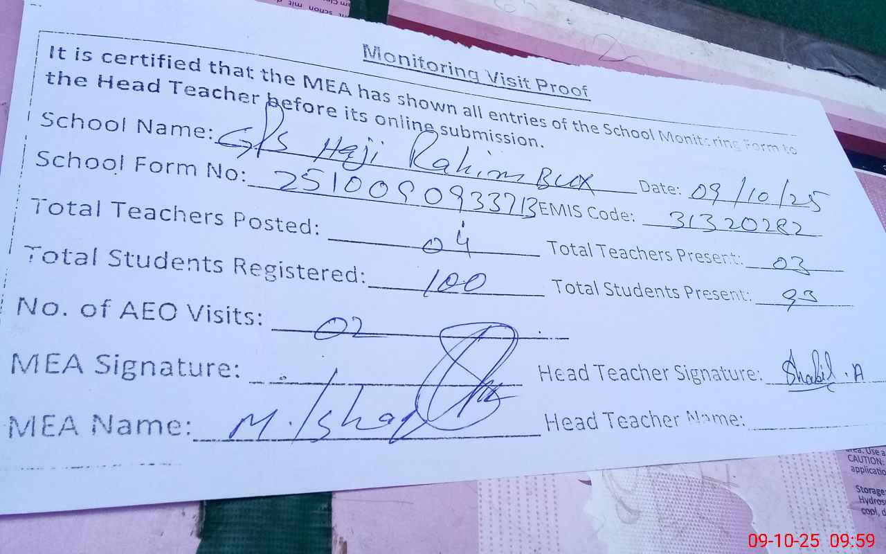 | EMIS Code: 31320282 | Name of School: GPS HAJI RAHIM BAKHASH AWAN | |||