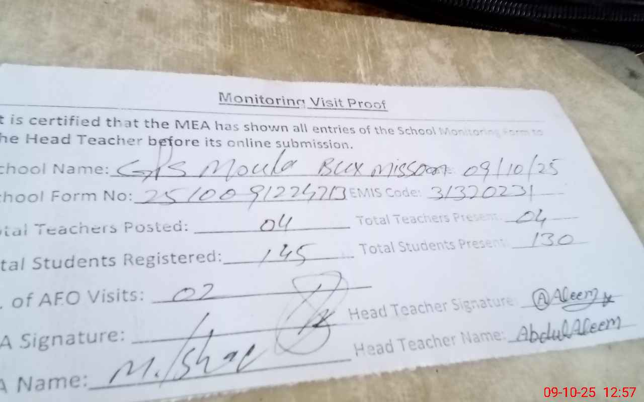 | EMIS Code: 31320231 | Name of School: GPS MOULA BUX MISSAN | |||