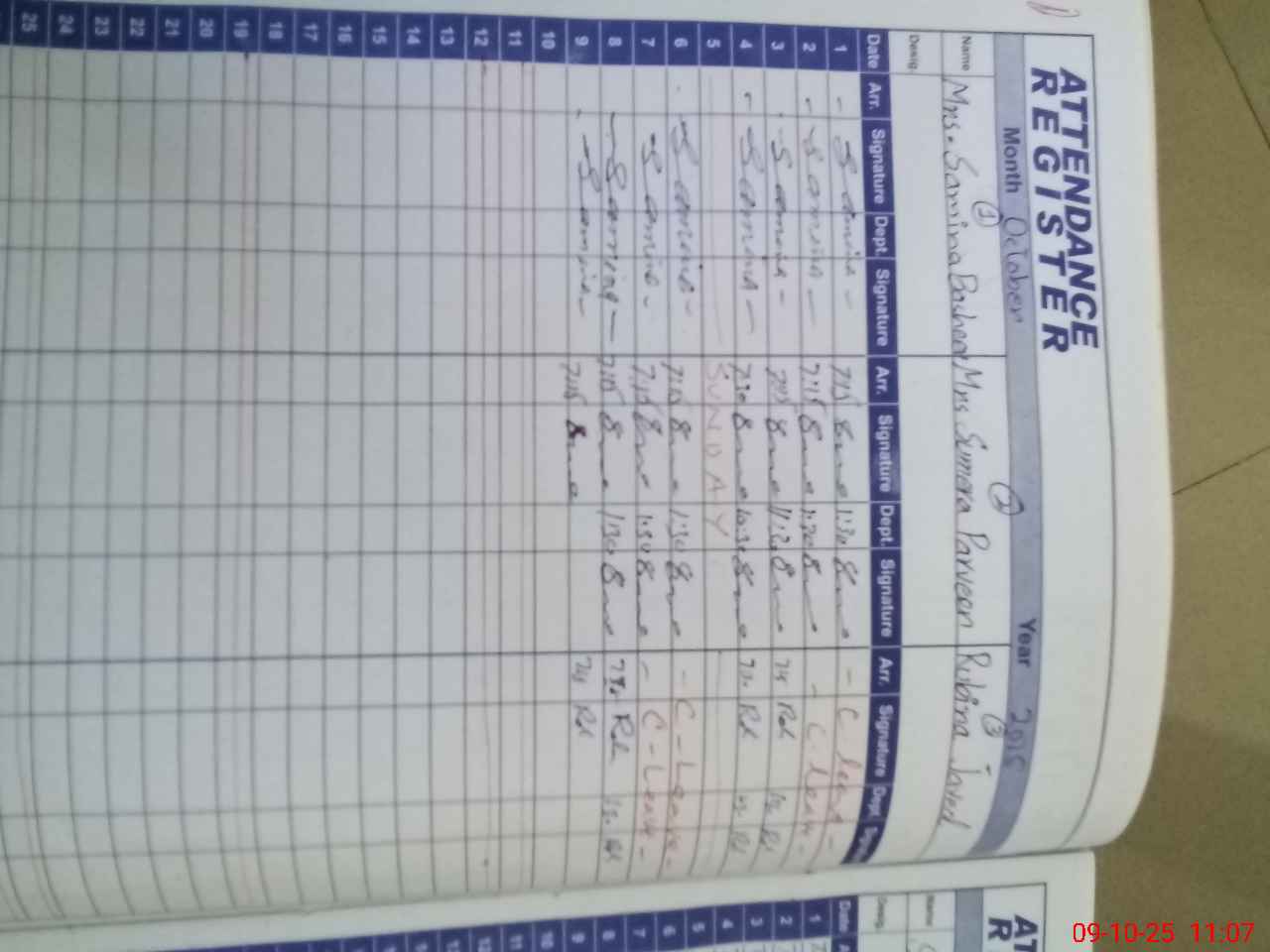 | CNIC | Full Name | Designation | R/C | Absence During Last Calender Month |