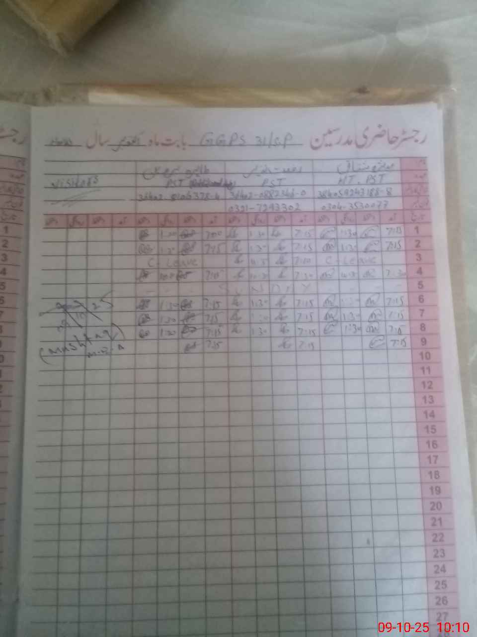 | Name: MU**** MU**** Designation: (School Headmaster's/Headmistress's) PST Phone/Cell Number: 03**** |