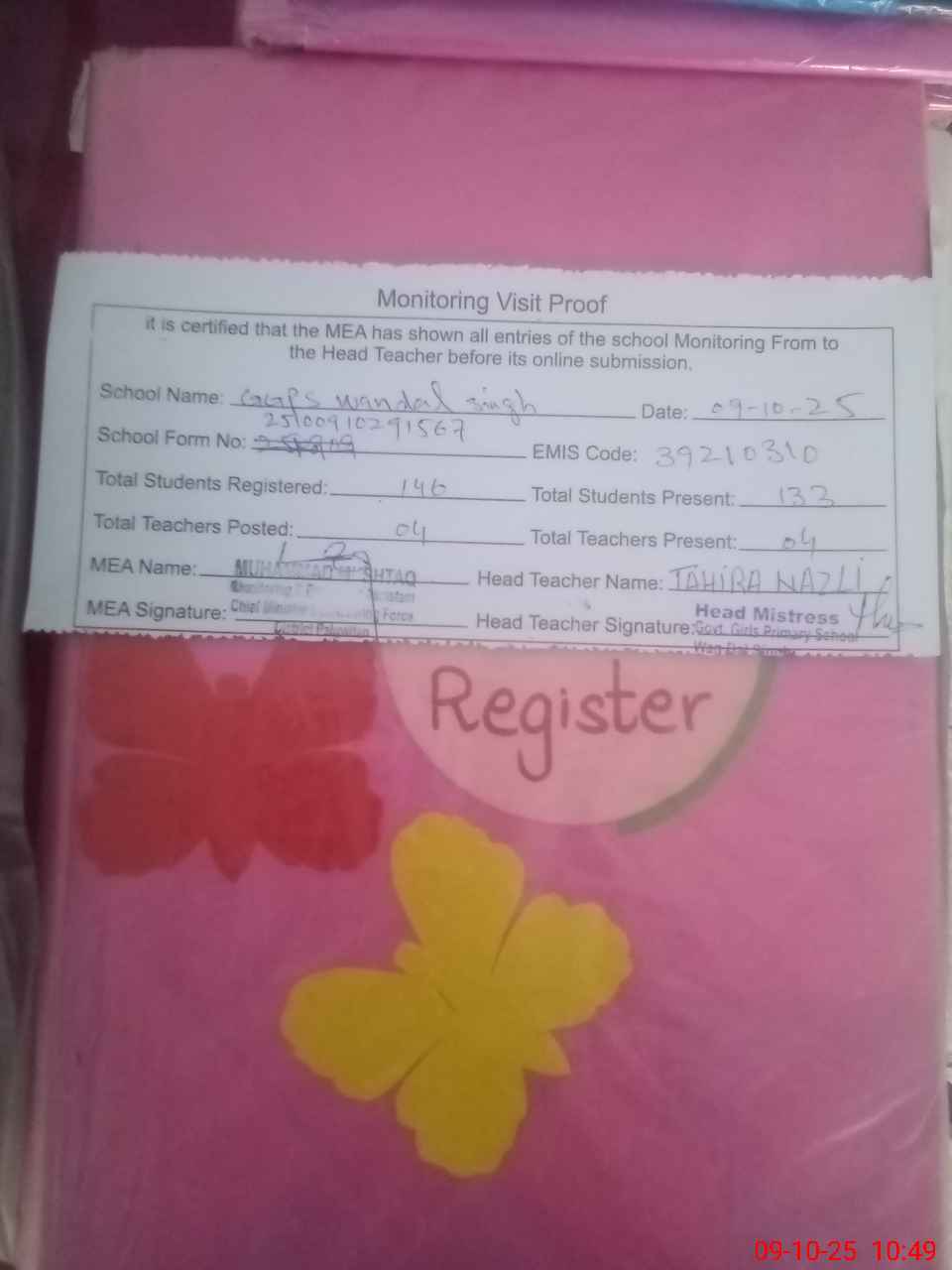 | EMIS Code: 39210310 | Name of School: GGPS WAN DAL SINGH | |||