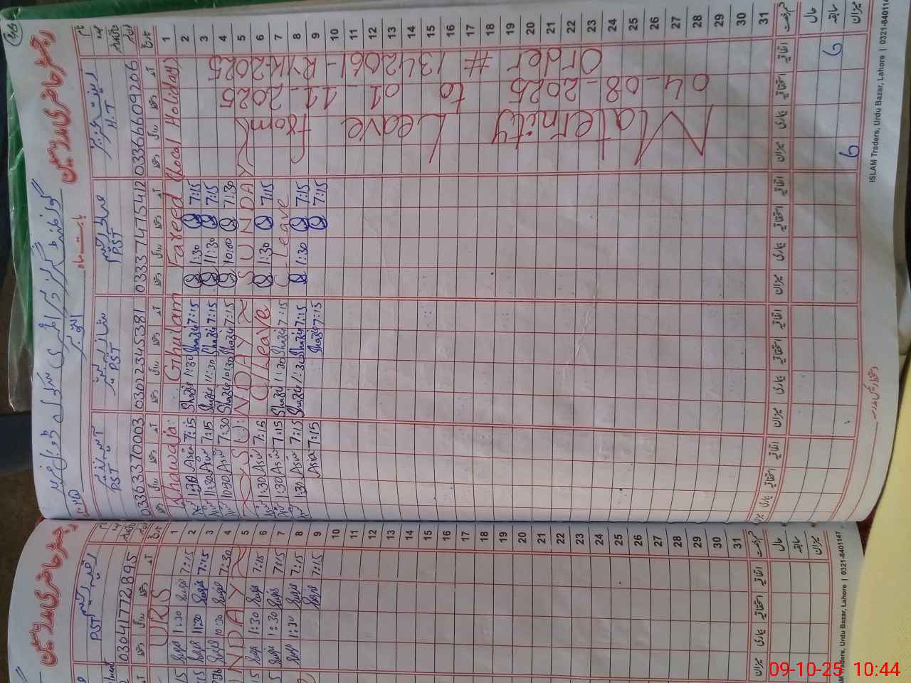 | CNIC | Full Name | Designation | R/C | Absence During Last Calender Month |