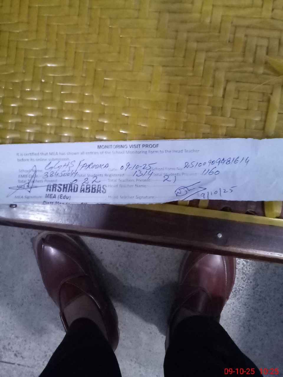 | Attendance Register | Head Teacher | MEA with School | Visit Proof |