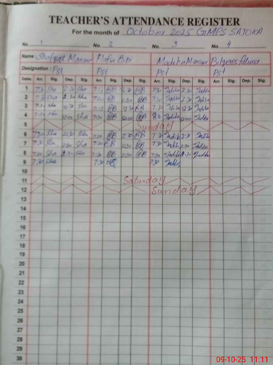 | Monitoring Date: 09-10-2025 | Start Time: 09-10-2025 10:36 AM | End Time: 09-10-2025 11:11 AM | Name of MEA: AR**** AB**** | |