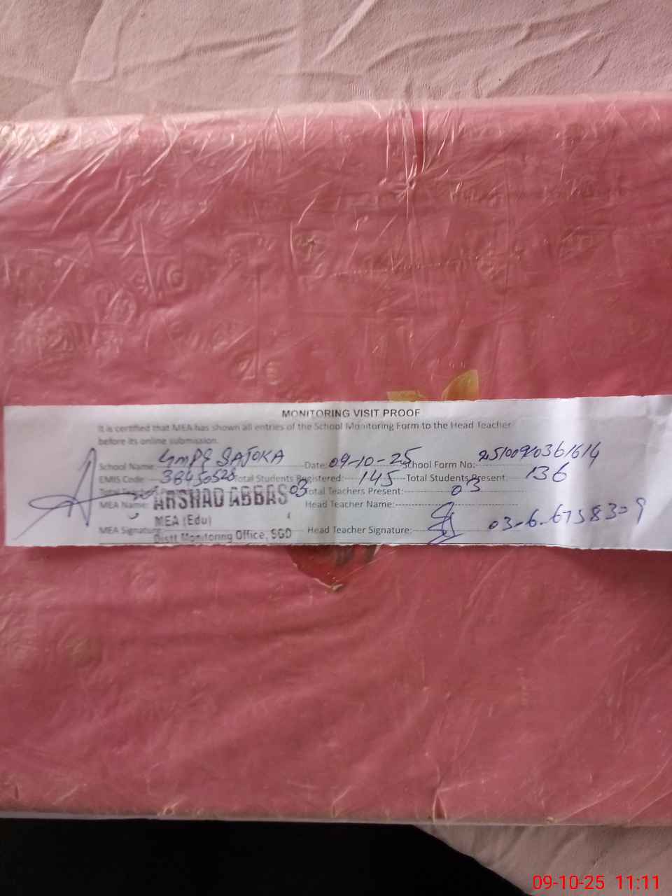 | Attendance Register | Head Teacher | MEA with School | Visit Proof |