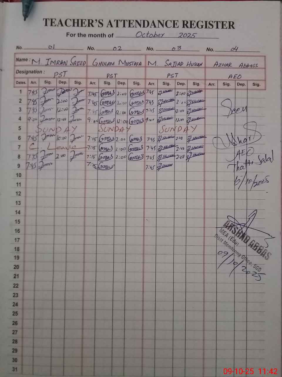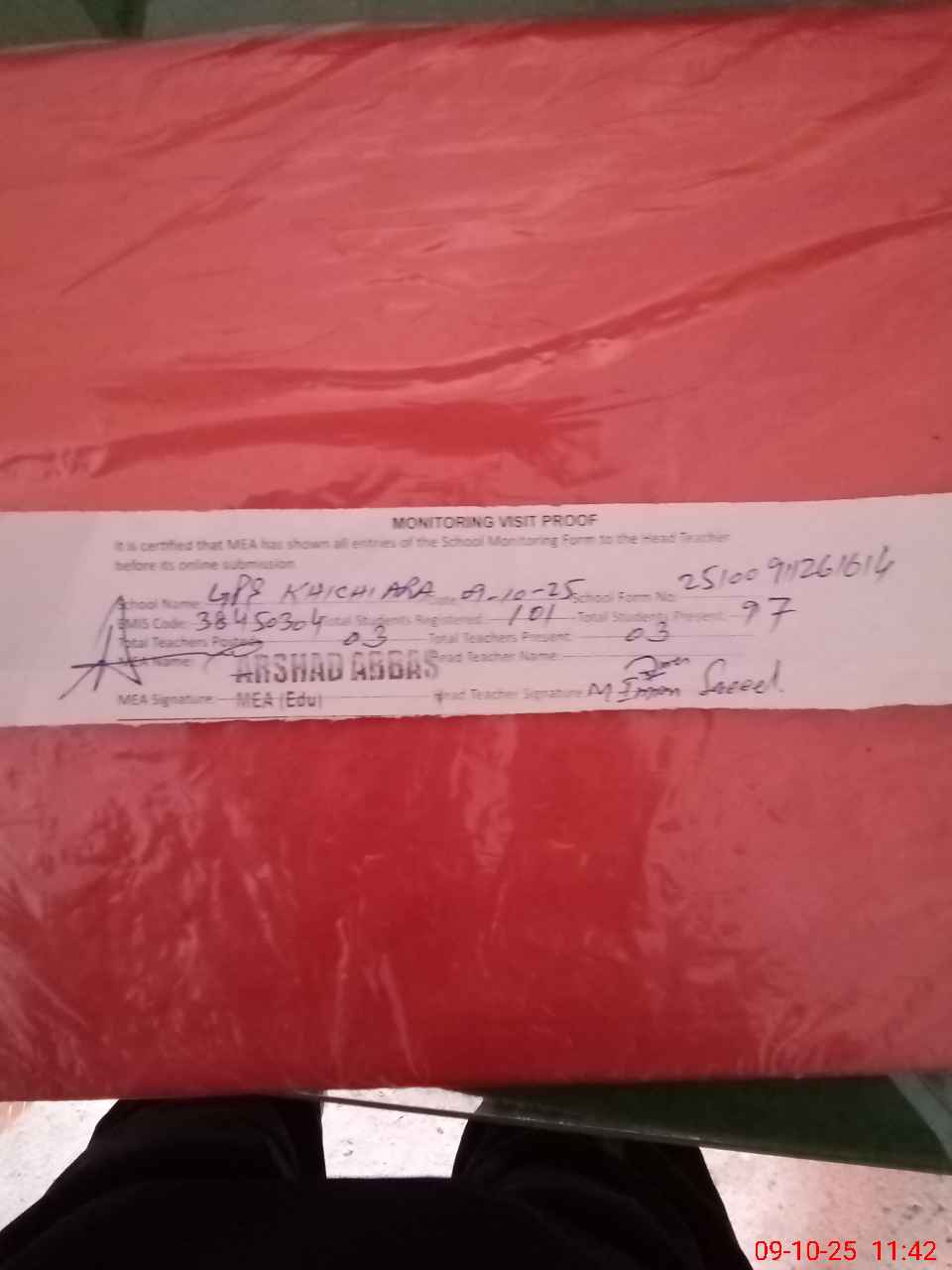 | Attendance Register | Head Teacher | MEA with School | Visit Proof |