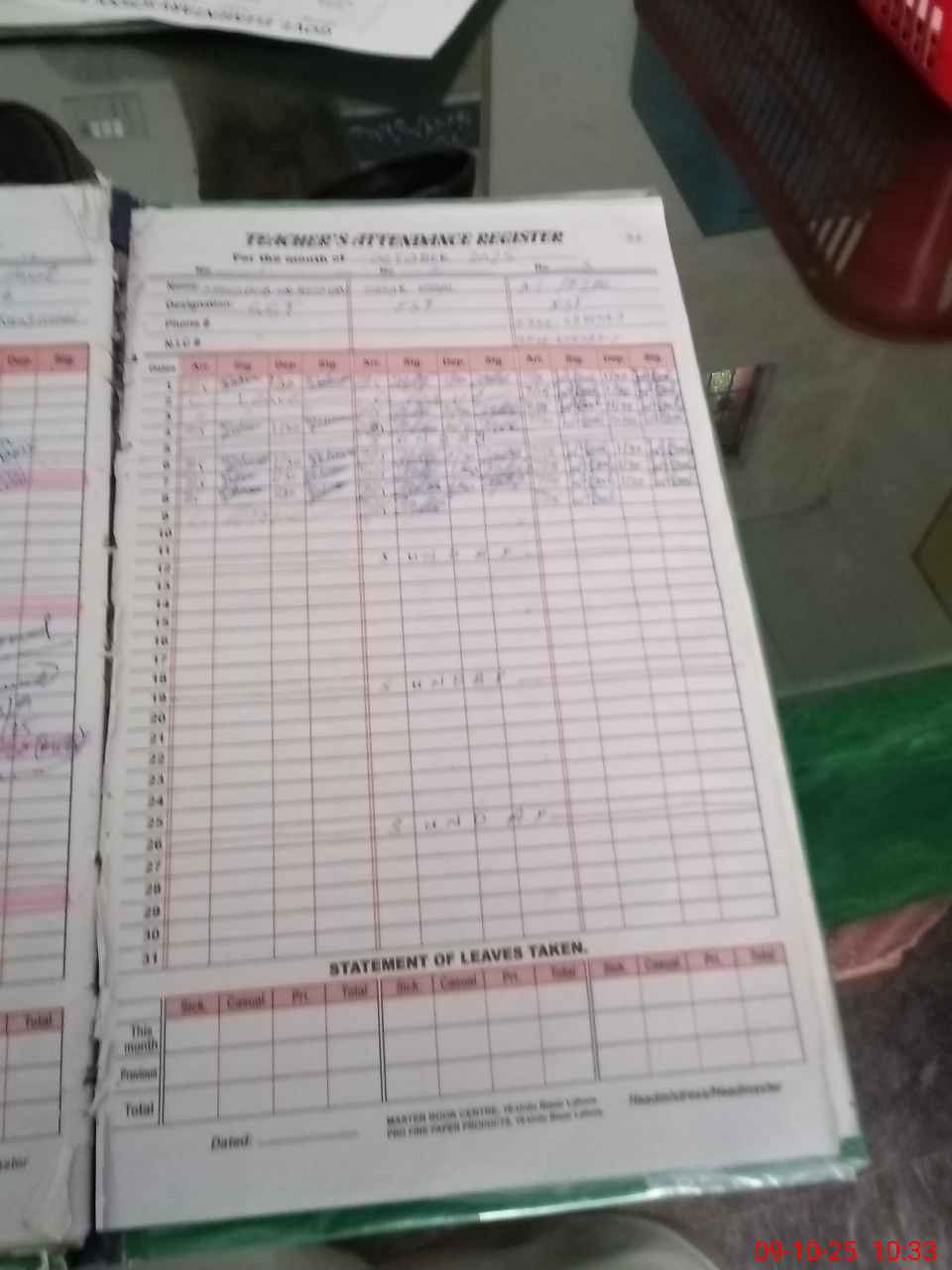 | CNIC | Full Name | Designation | R/C | Absence During Last Calender Month |