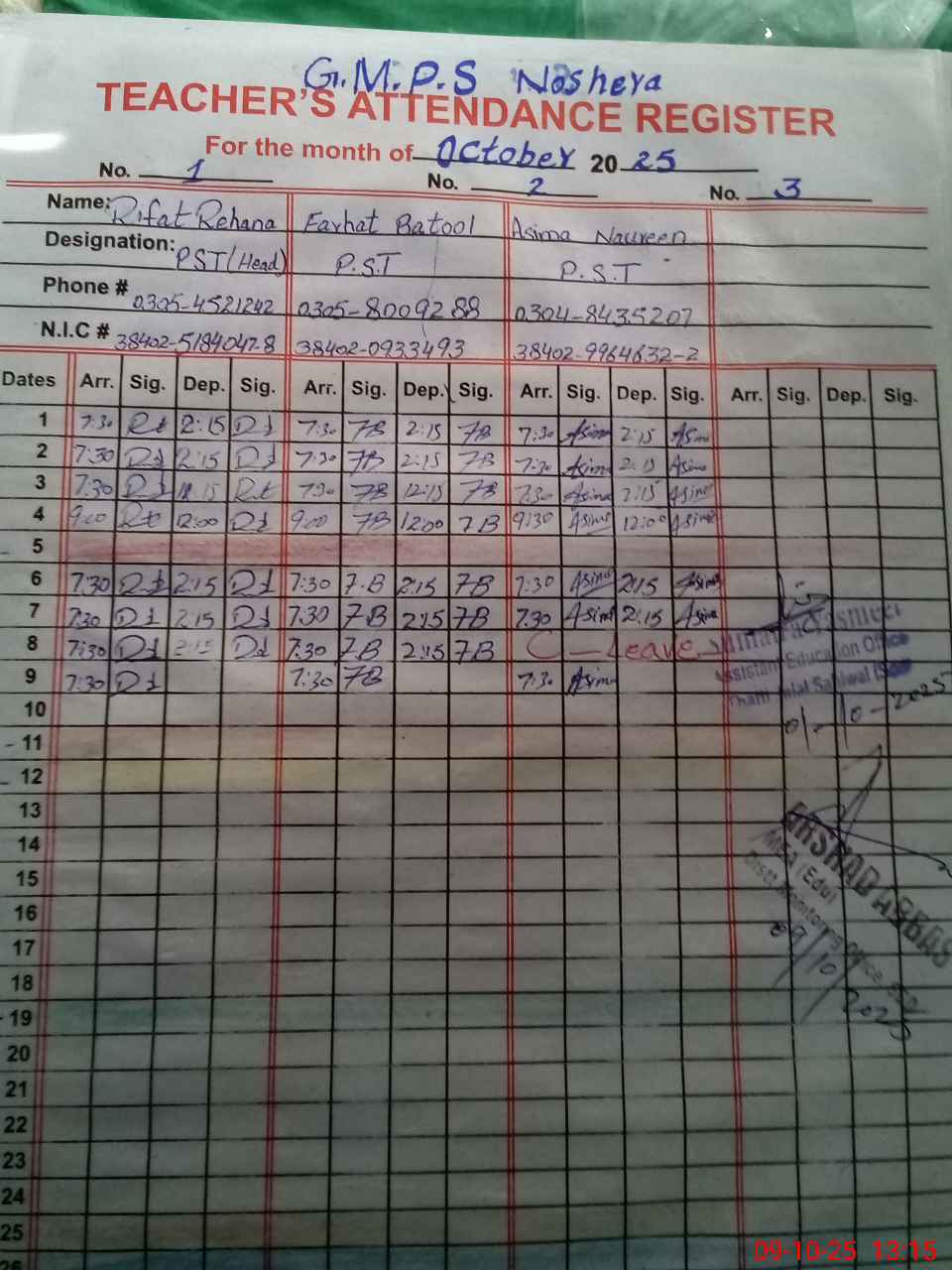 | Name: RI**** RE**** Designation: (School Headmaster's/Headmistress's) PST Phone/Cell Number: 03**** |