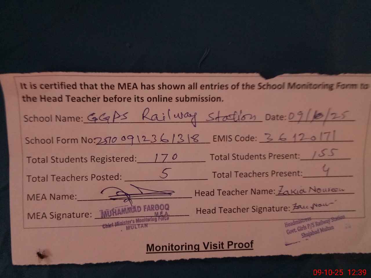| EMIS Code: 36120171 | Name of School: GGPS RAILWAY STATION SHUJABAD | |||