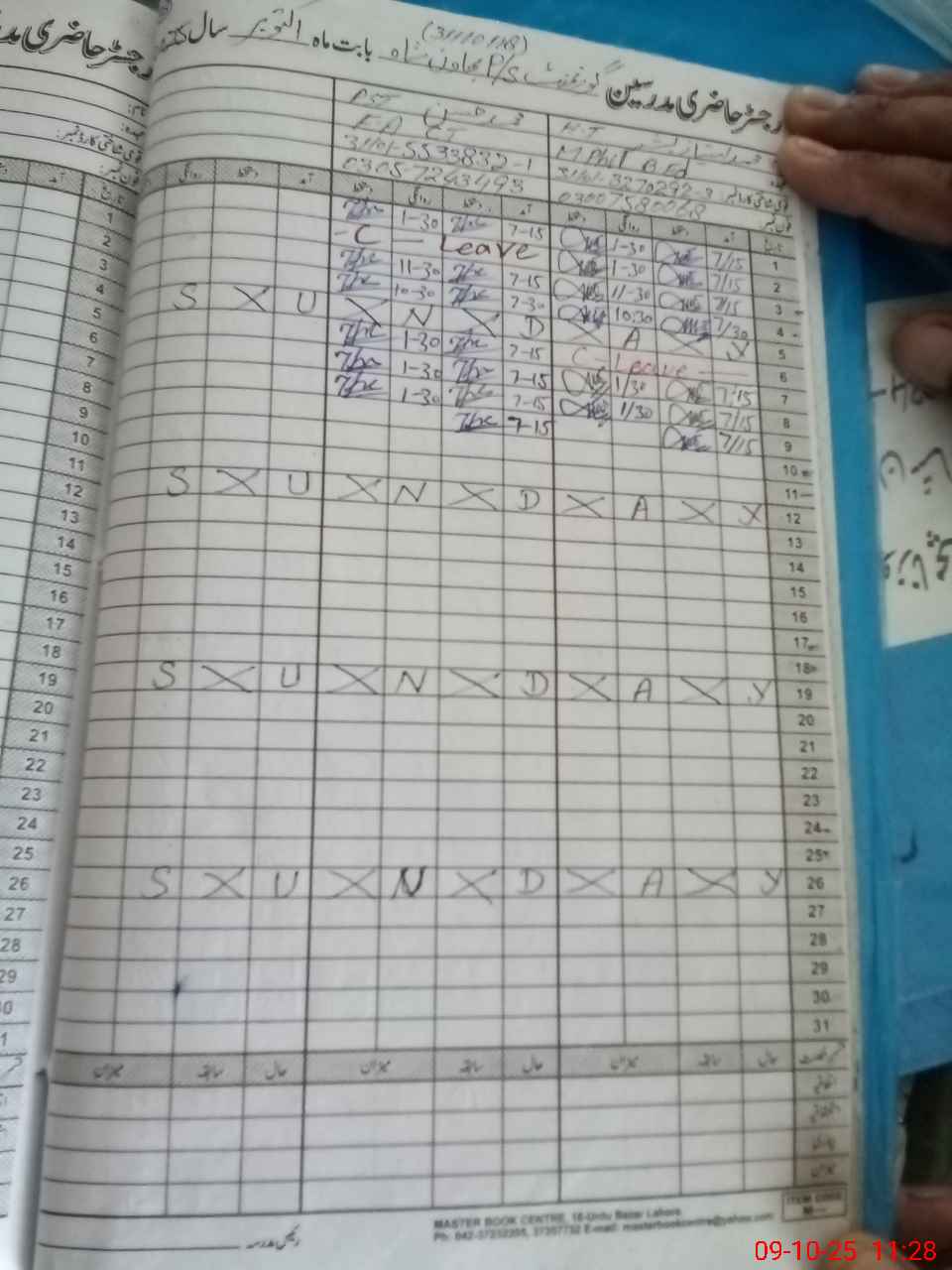| Leave | Duty | Absent | Maternity | Medical | Ex- Pak |