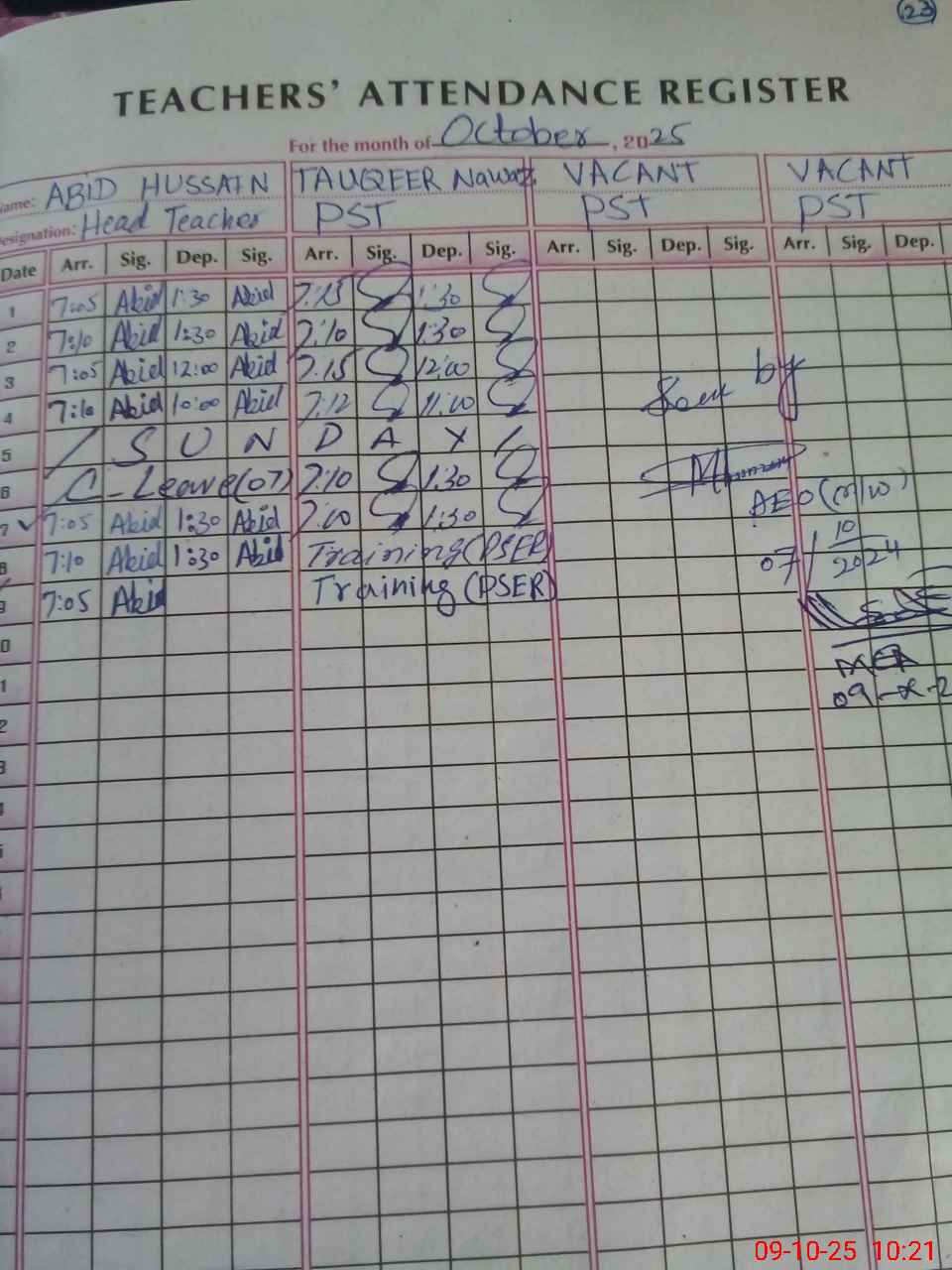 | Name: Ab**** Hu**** Designation: (School Headmaster's/Headmistress's) PST Phone/Cell Number: 03**** |