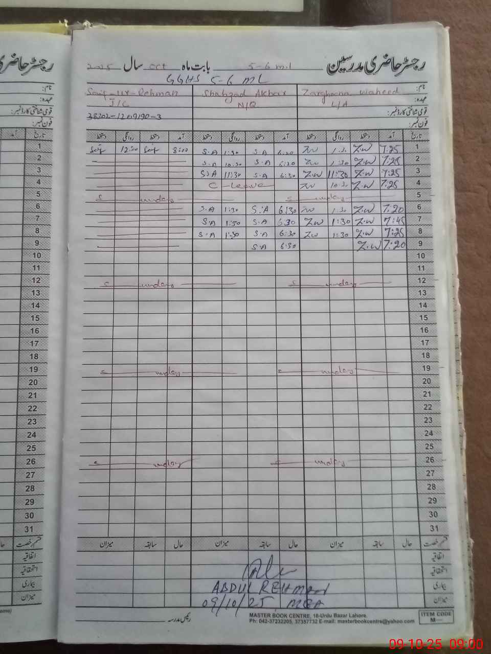 | 38**** | Sa**** UrRe**** | JC | 0 | 0 | 25 | 0 | 0 | 0 | 0 | 0 | 0 | Absent (Un-Authorized) | |