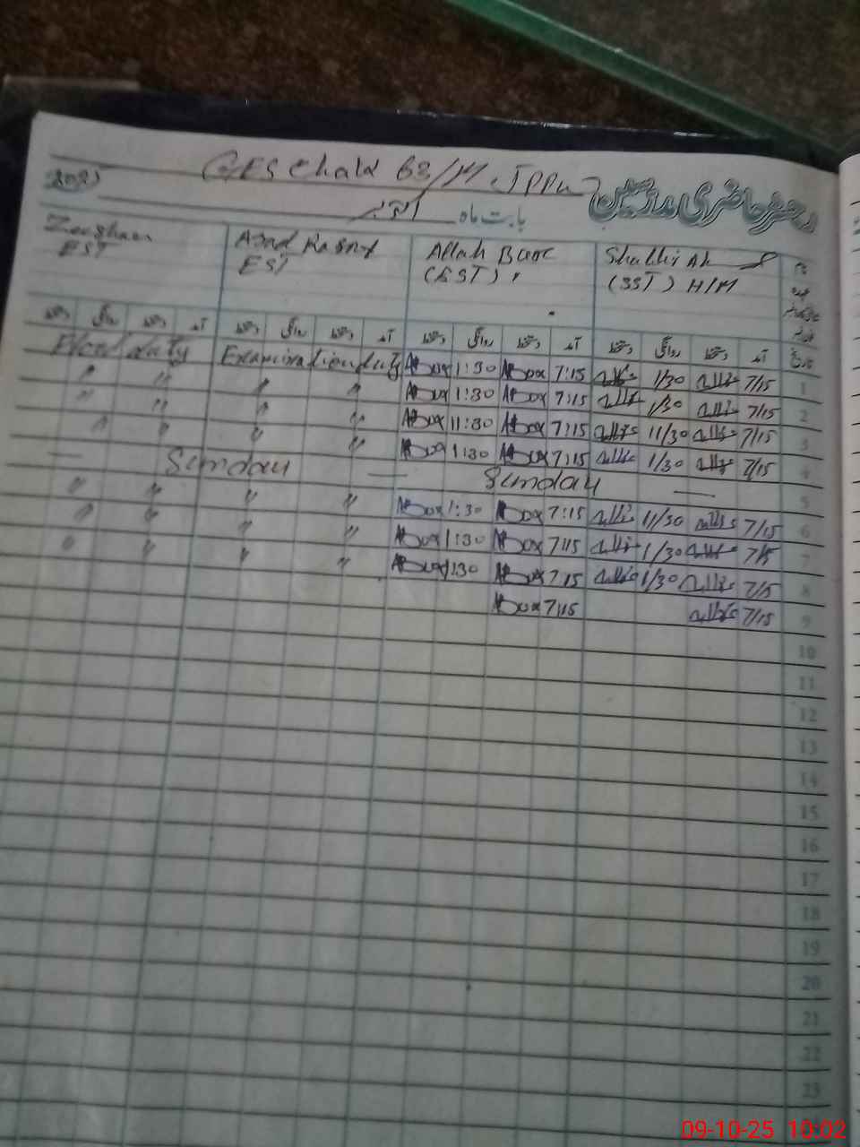 | 36**** | Mu**** Ab**** | 2 | 2 | 0 | 0 | 0 | 0 | 0 | 0 | 0 | 0 | 0 | Exam Duty |