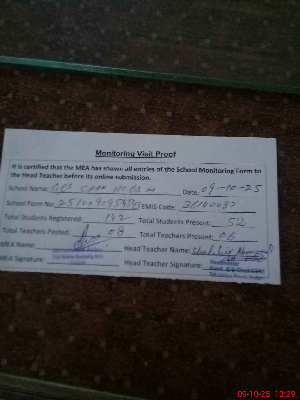 | EMIS Code: 36140082 | Name of School: GES CHAK NO 63 M MOZA CHAK NO 63 | |||