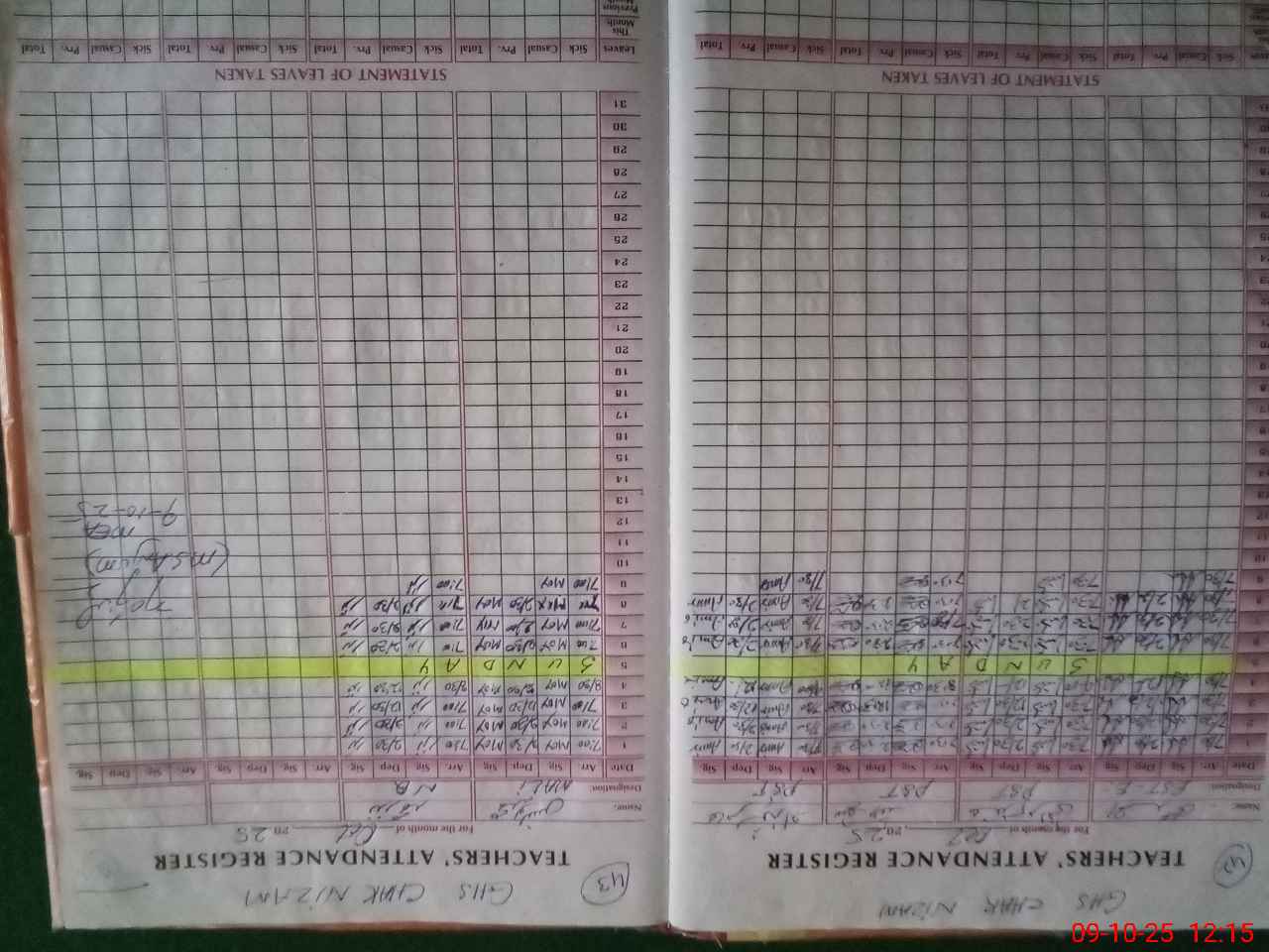 | CNIC | Full Name | Designation | R/C | Absence During Last Calender Month |
