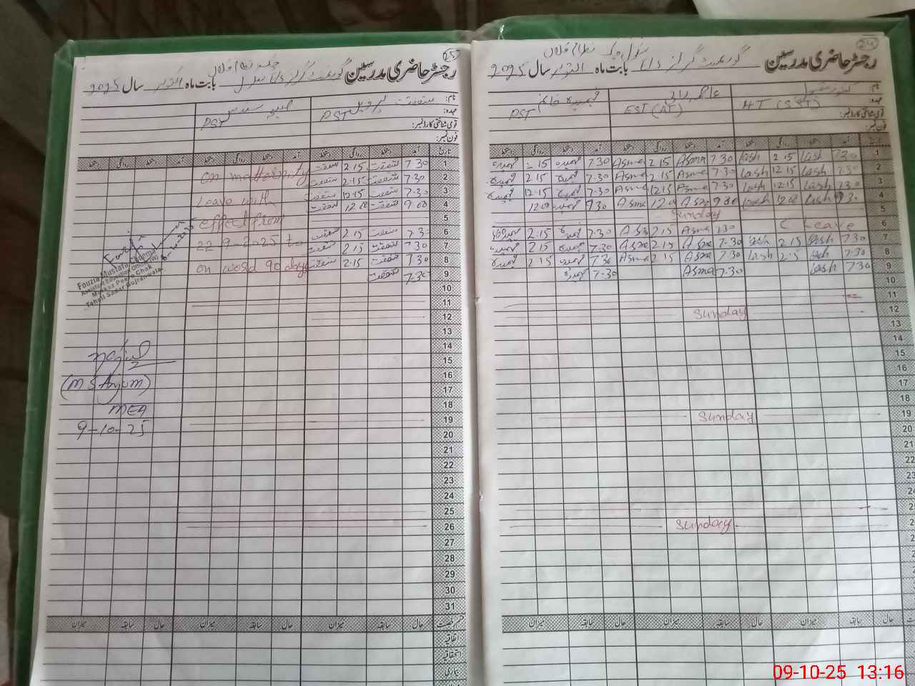 | Leave | Duty | Absent | Maternity | Medical | Ex- Pak |