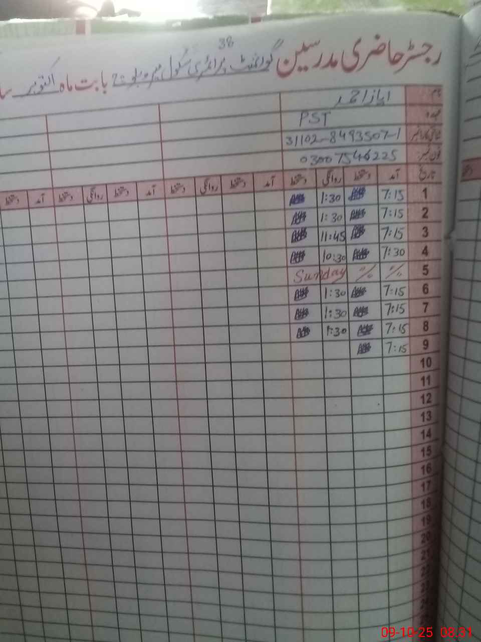 | Name: AY**** AH**** Designation: (School Headmaster's/Headmistress's) PST Phone/Cell Number: 03**** |