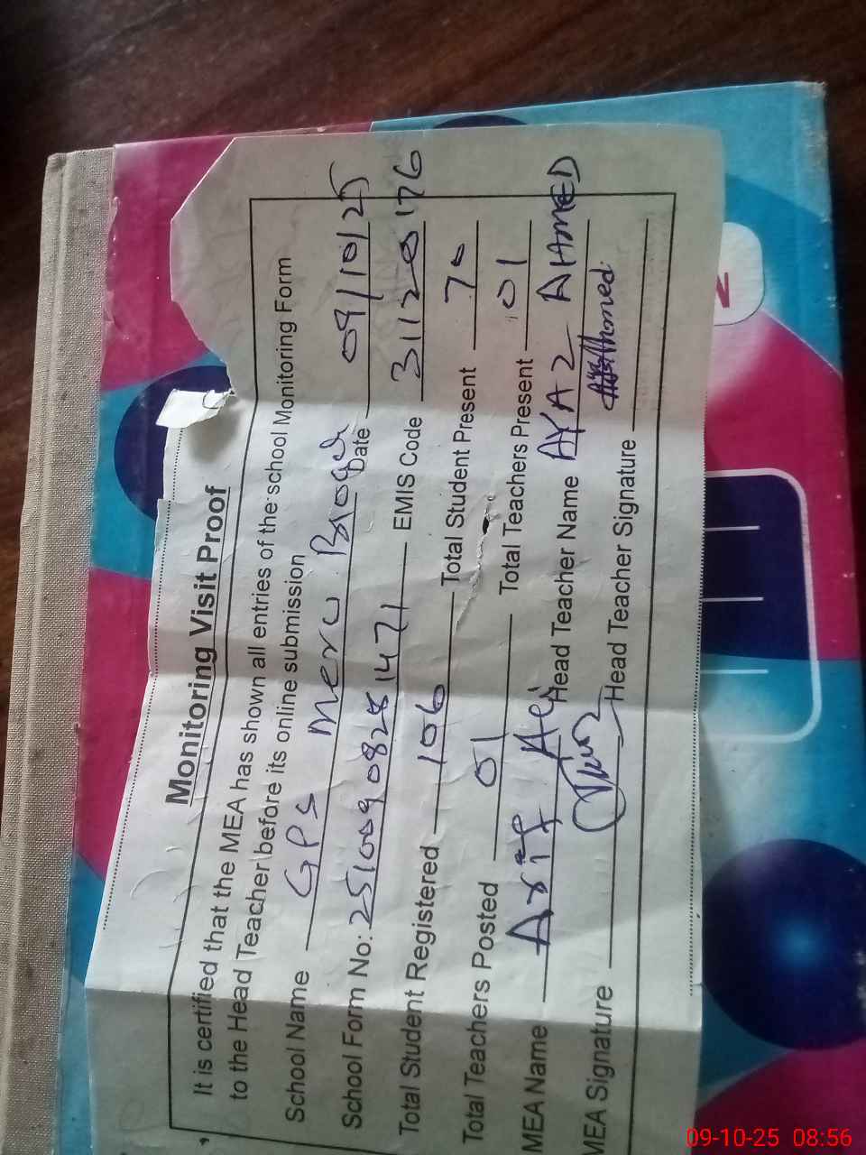 | EMIS Code: 31120176 | Name of School: GPS MERU BALUCH | |||