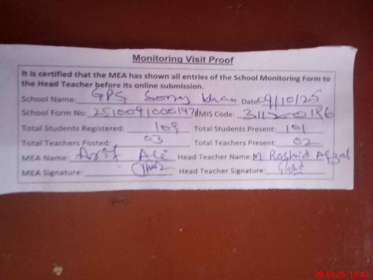 | EMIS Code: 31120196 | Name of School: GPS SONAY KHAN | |||