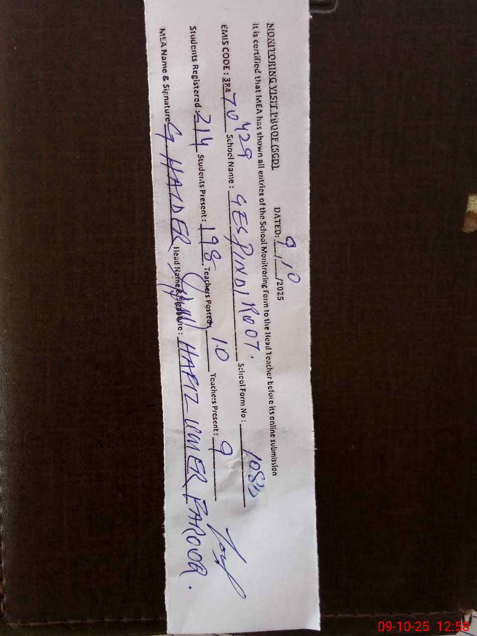 | EMIS Code: 38470429 | Name of School: GES PINDI KOT | |||