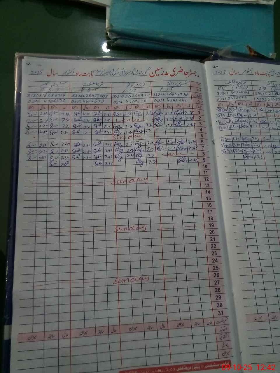 | CNIC | Full Name | Designation | R/C | Absence During Last Calender Month |