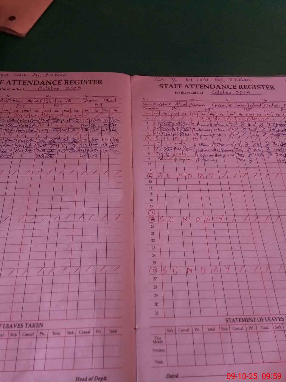 | Leave | Duty | Absent | Maternity | Medical | Ex- Pak |