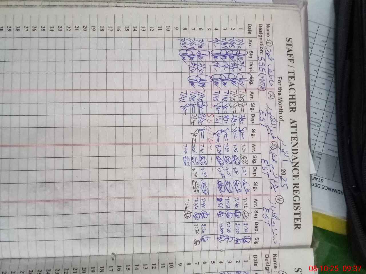| Name: Ab**** Sh**** Designation: (School Headmaster's/Headmistress's) Incharge Head (EST) Phone/Cell Number: 03**** |