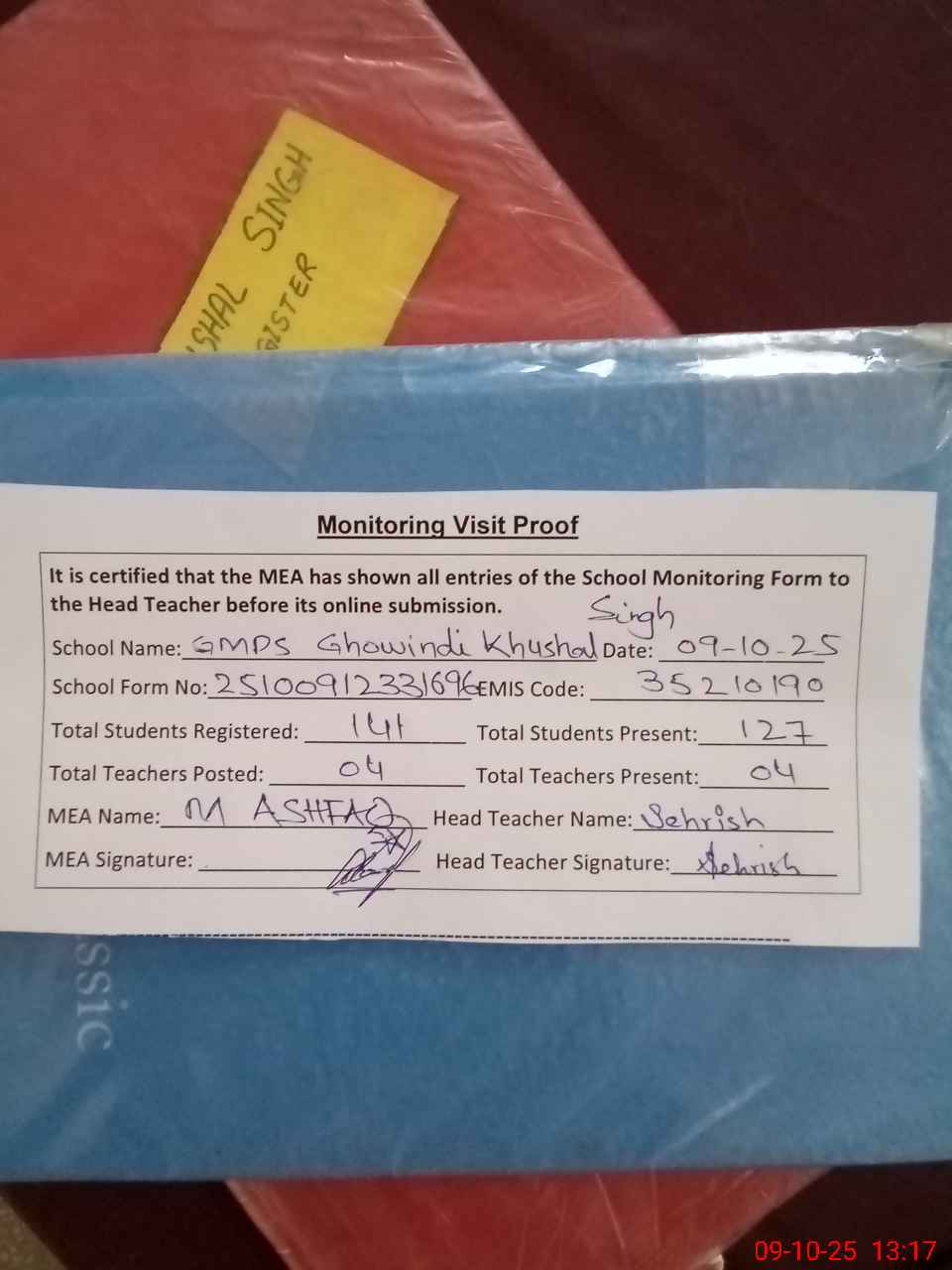 | EMIS Code: 35210190 | Name of School: GMPS GHOWINDI KHUSHAL SINGH | |||