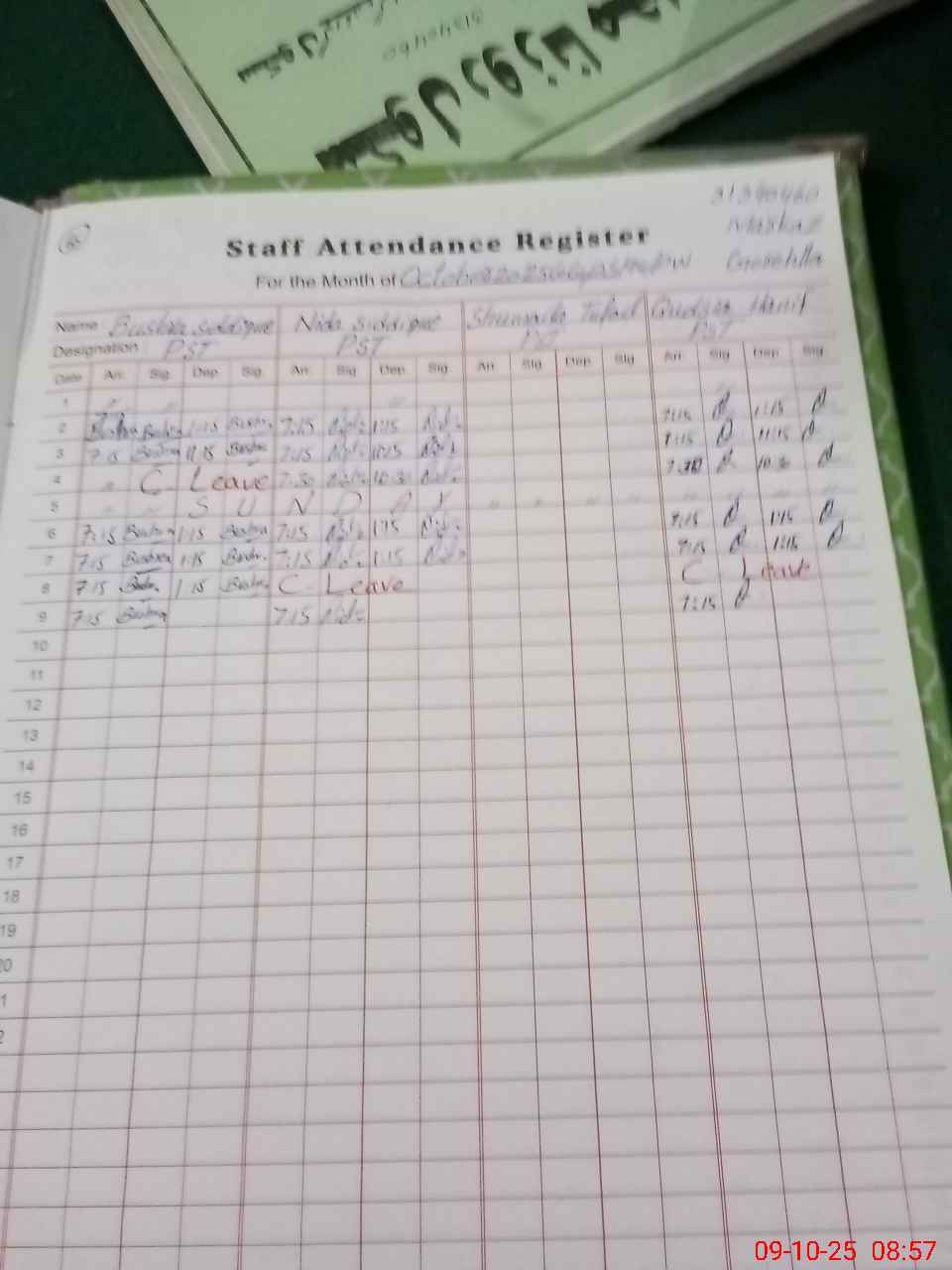 | CNIC | Full Name | Designation | R/C | Absence During Last Calender Month |