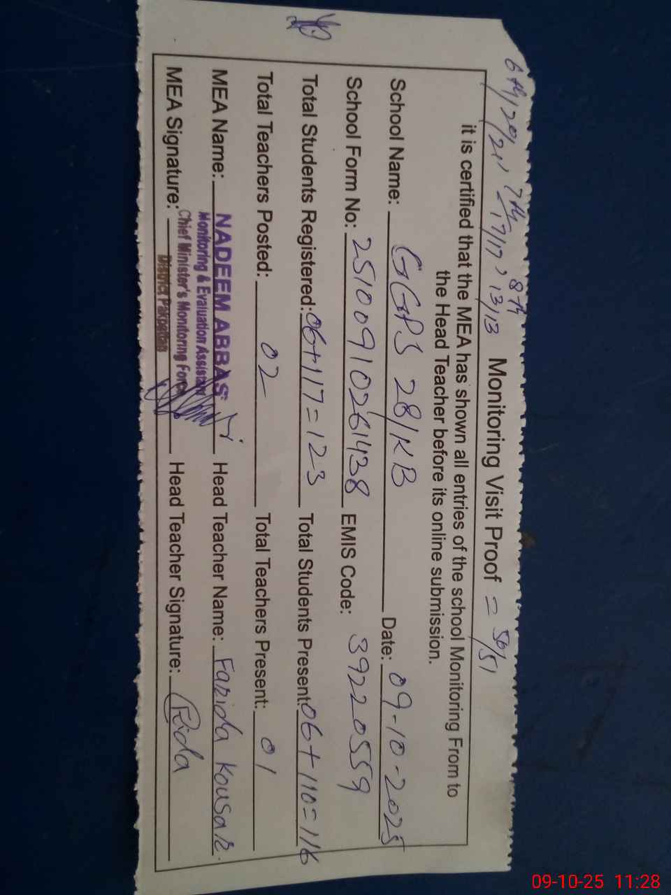 | EMIS Code: 39220559 | Name of School: GGPS 28/KB | |||