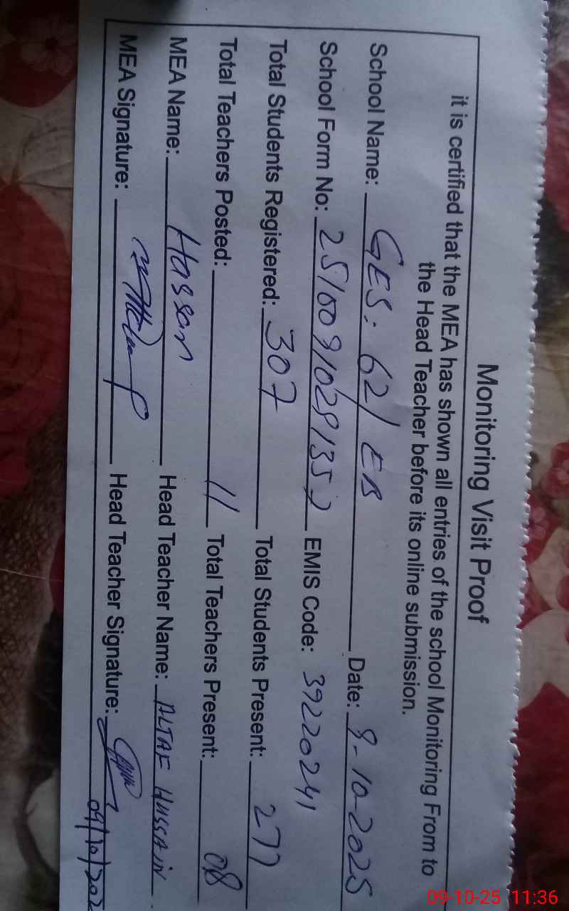 | Attendance Register | Head Teacher | MEA with School | Visit Proof |